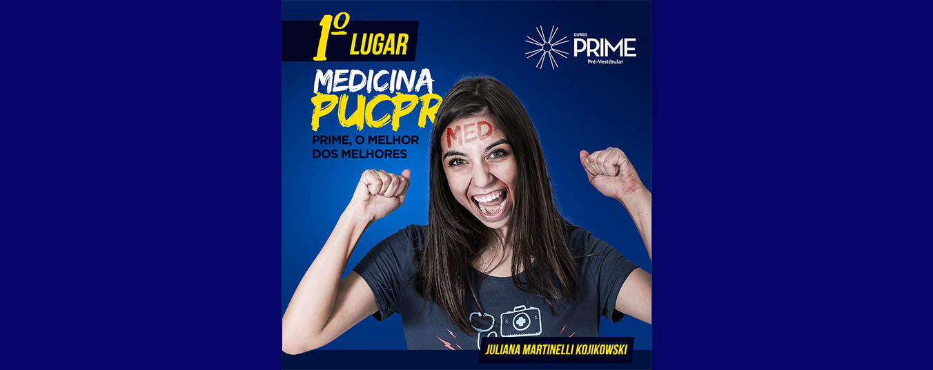 Primeira colocada entre todos os concorrentes no vestibular de inverno da PUC-PR, a aluna do curso Prime, Juliana Martinelli Kojikowski ganhou bolsa integral para cursar medicina na universidade. Fazer cursinho pré-vestibular no Prime, segundo ela, fez muita diferença para alcançar a aprovação.