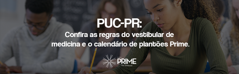 As inscrições para o vestibular de Medicina 2022/1 da PUC-PR estão abertas até o dia 21 de outubro. Se você já se inscreveu, fique atento: o curso Prime divulgou o calendário de plantões para o vestibular da PUC-PR. Serão nove encontros com a nossa equipe de professores especialistas, que vão abordar os conteúdos recorrentes de todas as disciplinas cobradas no concurso.