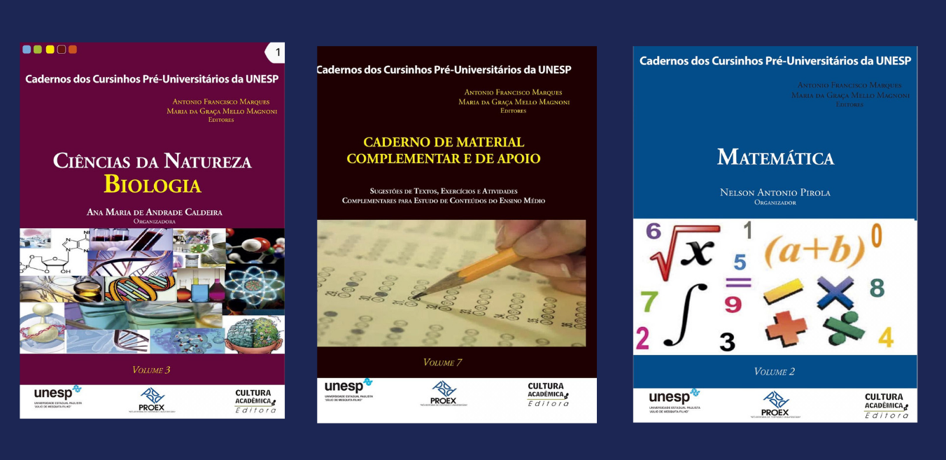 A Universidade Estadual Paulista “Júlio de Mesquita Filho” (Unesp) disponibilizou a 2ª Edição dos Cadernos dos Cursinhos Pré-Universitários. São sete volumes: Linguagens e Códigos - Língua Portuguesa e Língua Inglesa; Ciências da Natureza - Biologia; Ciências da Natureza - Física; Ciências da Natureza - Química; Matemática; e Ciências Humanas - Filosofia, Geografia, História e Sociologia.