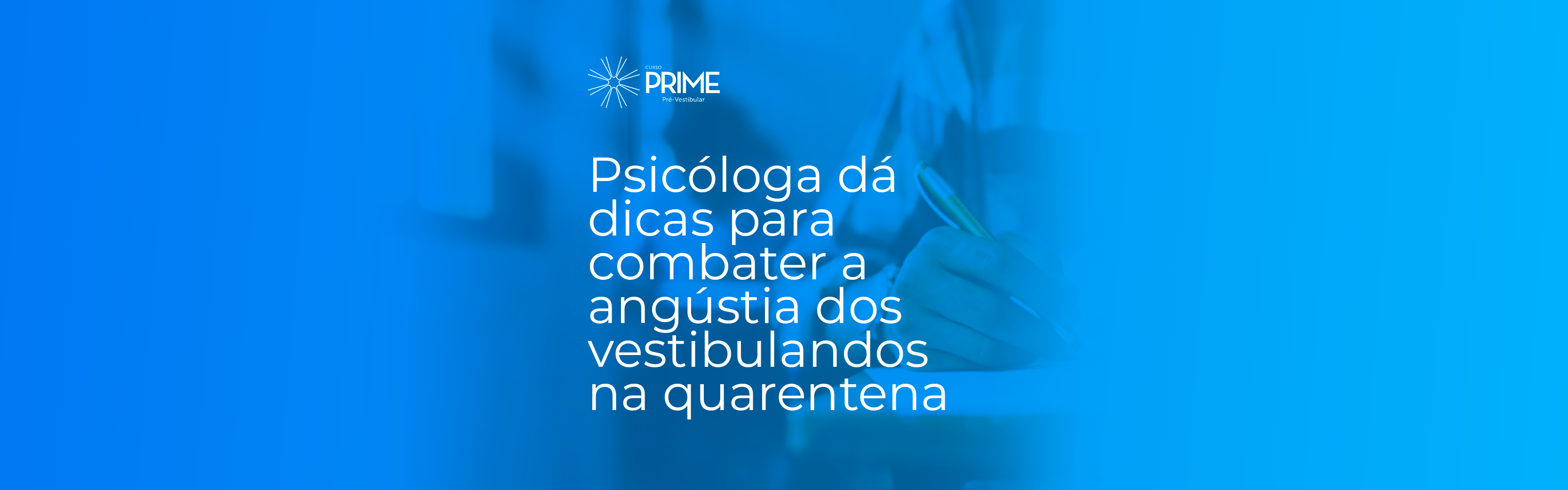 Aos vestibulandos acostumados ao cursinho, a única opção é continuar estudando em casa com o apoio da equipe pedagógica e das aulas online, como tem ocorrido no Prime. Manter um espaço exclusivo para assistir às aulas e fazer exercícios, com todos os materiais sempre à mão, é uma atitude esperada que ajuda na organização. “Mantenha a mesma rotina que você tinha antes: acorde cedo, troque de roupa, respeite os horários das aulas, das refeições e de descanso. Isso é essencial para manter a saúde mental”, orienta.
