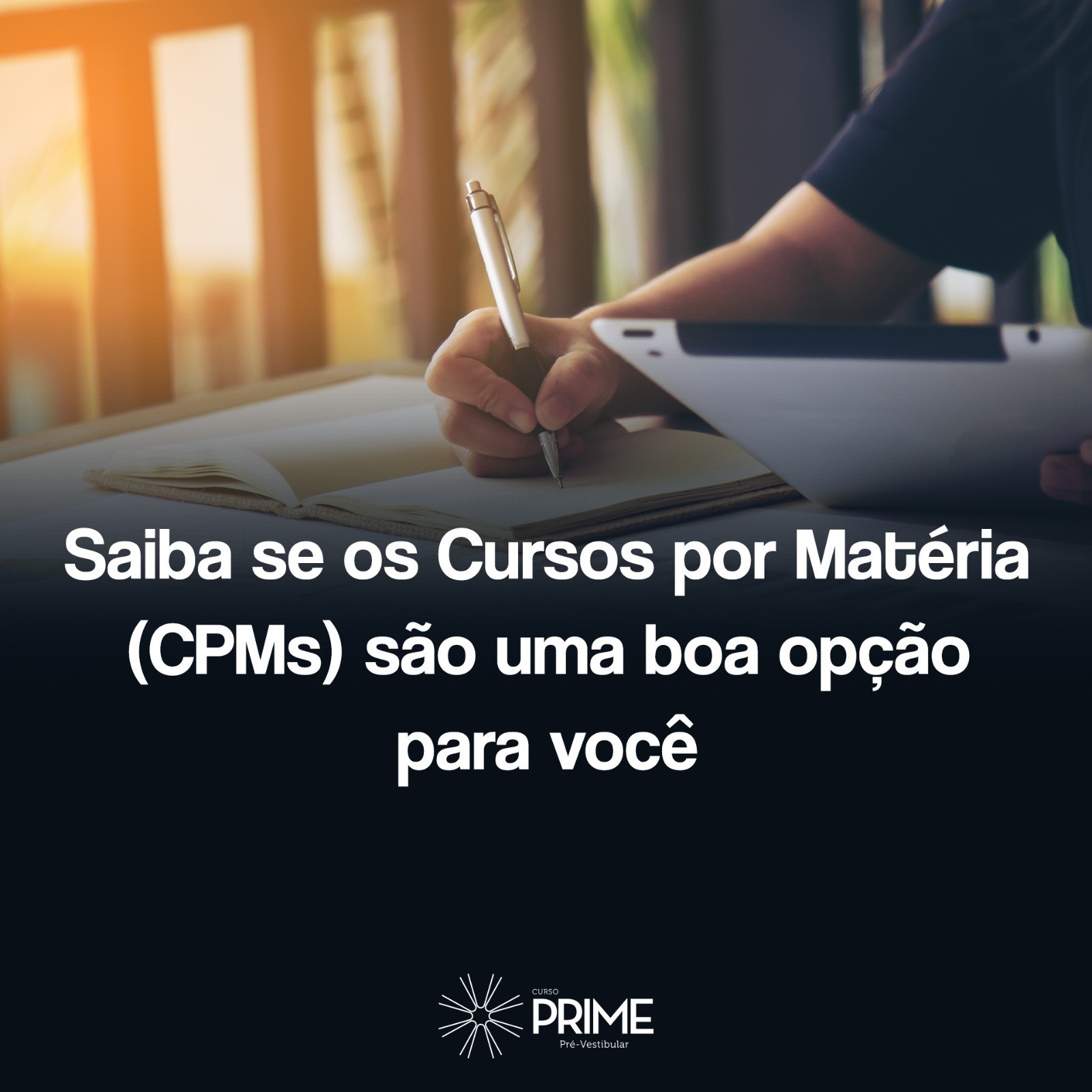 Quem faz cursinho pré-vestibular certamente já ouviu falar nos Cursos por Matéria, mais conhecidos como CPMs. Aqui no curso Prime, em Londrina, oferecemos anualmente vários cursos para apoiar a jornada dos alunos rumo à aprovação no vestibular.